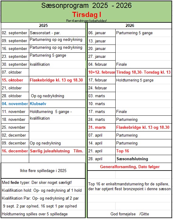 Tirsdag I – sæsonprogram